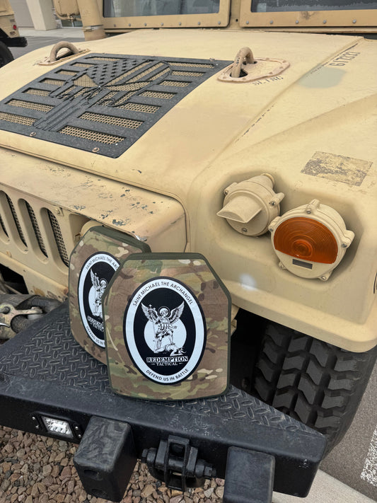 St Michael Archangel Plates Pair of 10x12 Level IV Ceramic PE Plates Ballistic FRONT AND BACK (SIZE SMALL to LARGE) Curved with Shooters Cut