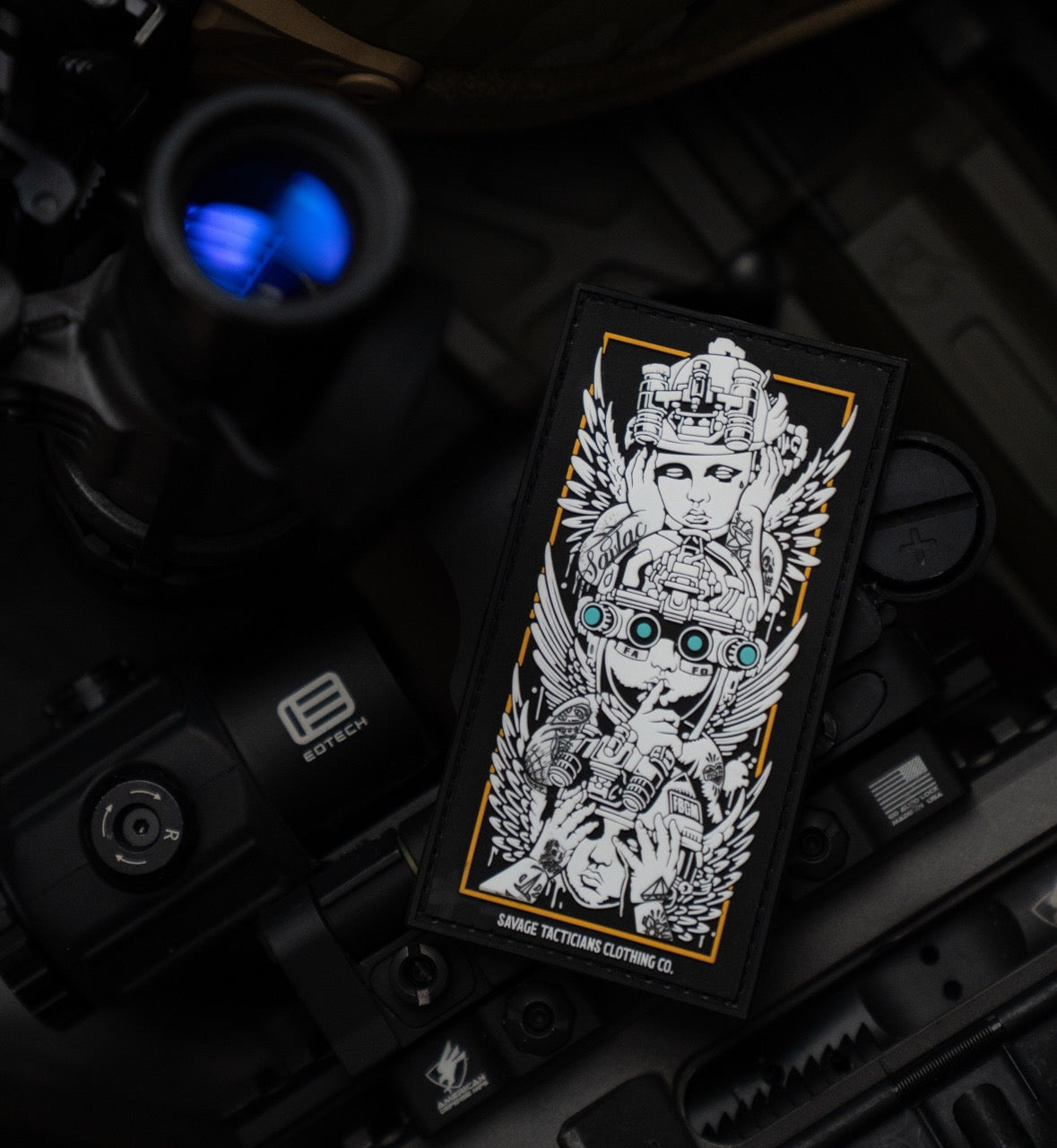 Built tough from heavy-duty PVC, the Proverbial Maxim Patch stands up to the harshest conditions without flinching. Its molded hook and loop fastener backing locks onto nearly any fabric with ruthless efficiency. At 3 inches wide, this patch features tactical geared cherubs—an unexpected edge that blends battlefield grit with a rebellious spirit. Perfect for those who demand durability and a bold statement in their gear.
